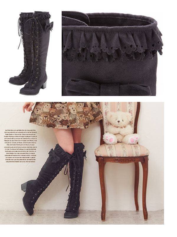 Boots are back, rejoice! This extremely popular and especially beautiful new brand of boots are pretty as a picture could possibly be. Featuring seductive lace trim and assorted girly bows, these feminine and absolutely sexy knee creepers are frankly the most wonderful thing you can put on your feet this year. Pick a color and buy! (While stocks last!)