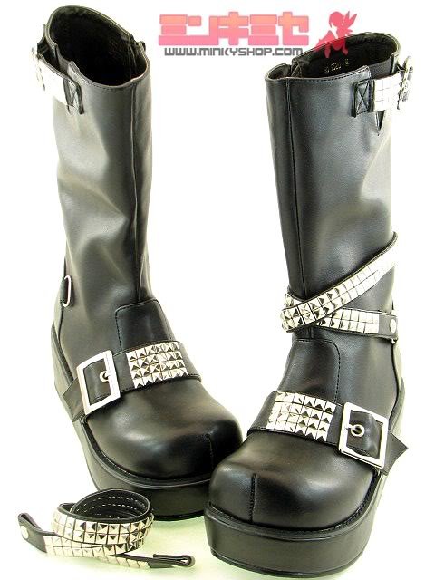 This super high quality footwear is pure-style in a hard-wearing design. Cyber punk rocker platform calf boots in black PU with pyramid studded strap detail, replete with studded removable strap feature, they're a serious highlight for punk fashion fans. Unbelievably funky!